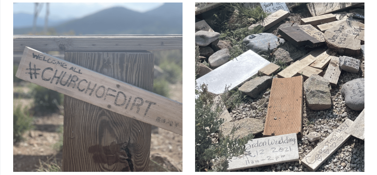 I love Park City… at the top of Empire Pass is a sweet little area called the “Church of Dirt”. It boasts some of the most beautiful views and is as authentic an outdoor wedding “venue” as one can find. There are ten wooden benches and a wooden altar. To reserve this charming location for a wedding, one merely puts down a rock or piece of wood with their names/wedding date and adds to the reservation planner that resides in the rocks.